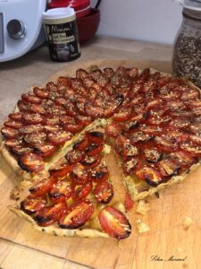 Bonjour aujourd’hui je vous propose une tarte qui fera plaisir aux amateurs de tomates cerises.