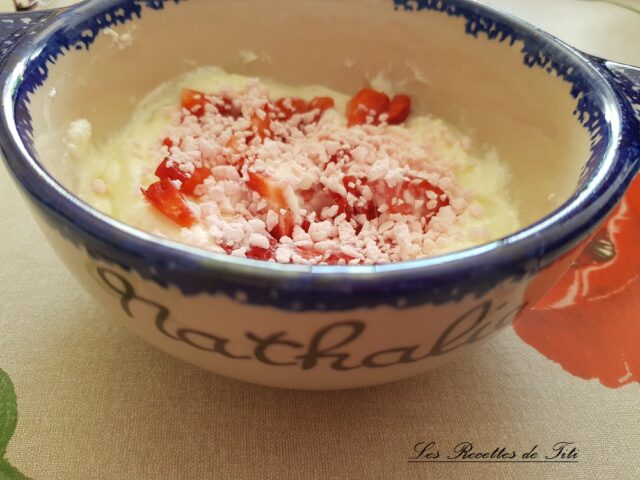 Je vous propose donc une Glace à la fraise rapide et sans sorbetière (au fromage blanc stracciatella).