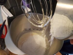 - Normalement dans le pot du pétrisseur il faut d’abord placer ce qui est liquide et finir par les ingrédients « secs ».