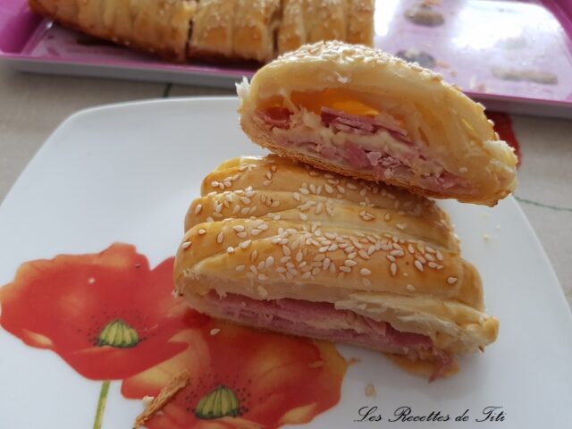 Coucou on est dimanche aujourd’hui, donc pour ce soir, je vous propose une tresse feuilletée jambon fromage au sésame.