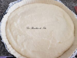 - Dans un moule à tarte étalez et foncez la pâte feuilletée.