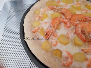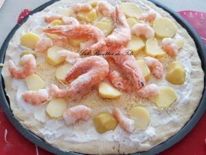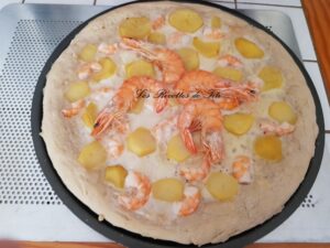 - Je dispose mes crevette encore surgelées directement sur la pizza.