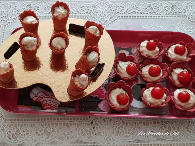 Mon Partenaire Prêt à Garnir m’avait offert, pour tester, un assortiment de Mini veggy betterave rouge et de Mini cône tomate + plateau en forme de présentoir palette de peintre (9 trous) ; (très très jolie d’ailleurs, j’ai beaucoup aimé).