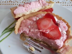 Juste pour la déco, je me suis servie des crumbles spéculoos et meringues fraises de mon partenaire Prêt à garnir. C’est excellent et ça donne un ptit goût croquant en plus à mon dessert.