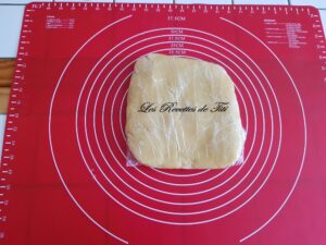 - Abaissez-la au rouleau à pâtisserie de 2 à 3mn d’épaisseur (tout dépend si vous aimez la pâte épaisse ou pas).