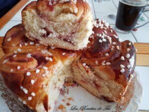 Coucou vous l’attendiez tous, la voici, la voilà… ma recette de la brioche à la framboise (ou plutôt à la confiture de framboise).