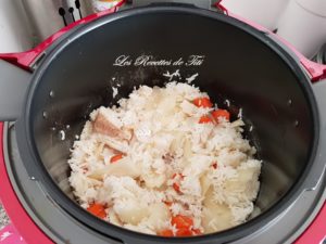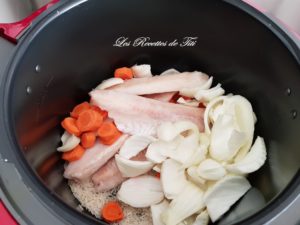 - Dans la cuve du Cookeo, placez le riz, les légumes et le poisson.