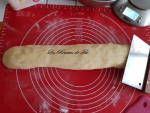J’ai repris sa recettes avec les mêmes mesures des ingrédients sauf pour la levure de boulangerie, je l’ai remplacé par un sachet de levure de boulangerie de 7 g (pour 500 g de farine).