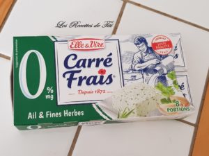 - J’ai utilisé des fromages frais ail et fines herbes 0% mais vous pouvez utiliser un fromage frais nature.