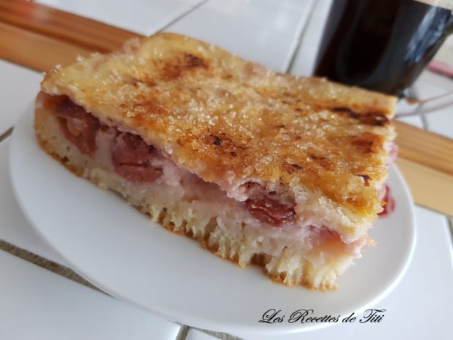 Comme il me restait au congélateur, des cerises, et que j’avais grande envie d’un clafoutis, ben il ne me restait plus qu’à m’exécuter, pour le plus grand bonheur de mon chéri.