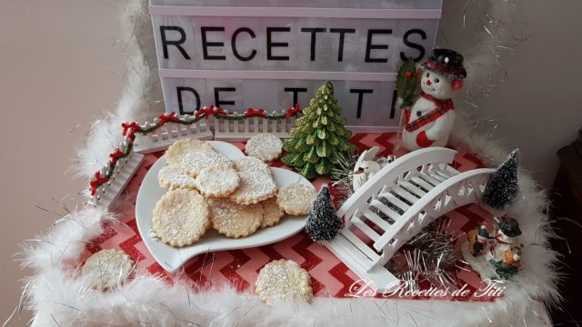 - A la sortie du four saupoudrez les biscuits de sucre glace et laissez les refroidir sur une grille.