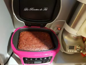 Personnellement je l’ai cuit au Cake Factory de Tefal® mais même s’il était excellent, je le referais mais dans un moule à cake et au four.