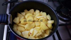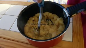 - Dans une casserole, faites chauffer l’eau, ajoutez-y la gélatine et les poires écrasées et le sucre.
