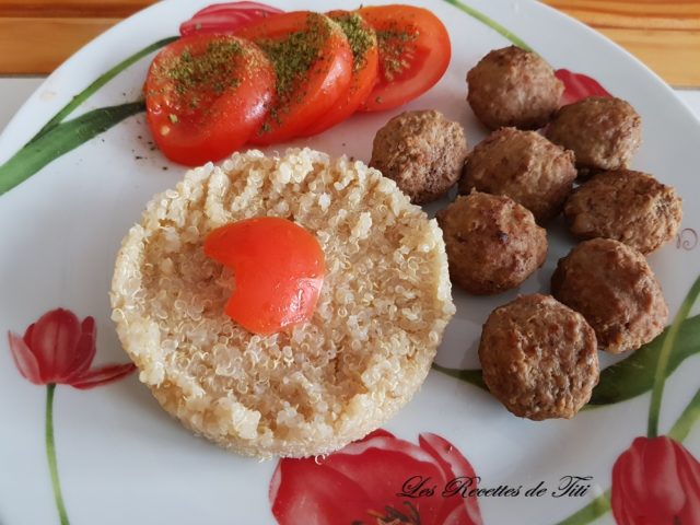 Servez chaud, accompagné, comme ici de Quinoa et de tomates.