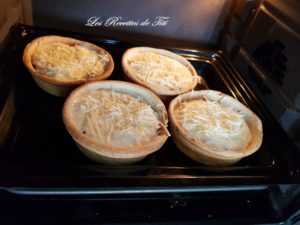 - 5 mn avant la fin j’ai remonté la plaque pour que le dessus des quiches soit bien dorée.
