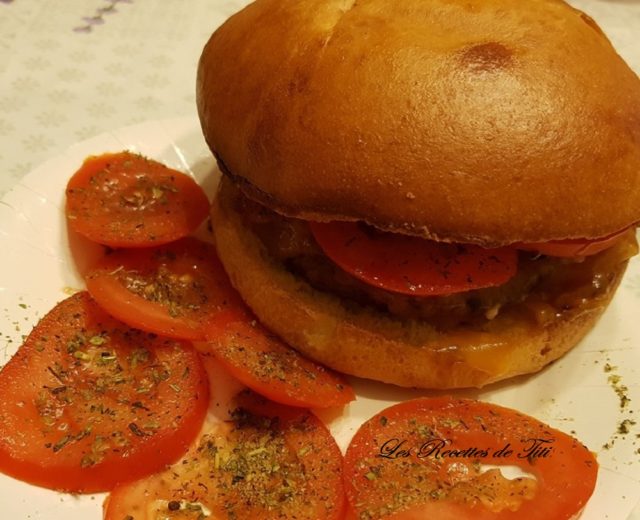 Et voilà, il ne vous reste plus qu’à déguster, accompagné de frites, salade verte ou comme moi avec le reste des tomates.