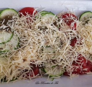 Voilà j’ai franchis le pas et suis enfin allé à Grand Frais, j’en ai profité pour faire le plein de légumes. Normalement je ne supporte pas les courgettes ni les tomates, mais là j’en avais vraiment envie. Donc en route vers l’aventure et malgré la canicule qui a sévit je l’ai préparer au mini four pour nous épargner plus de chaleur.