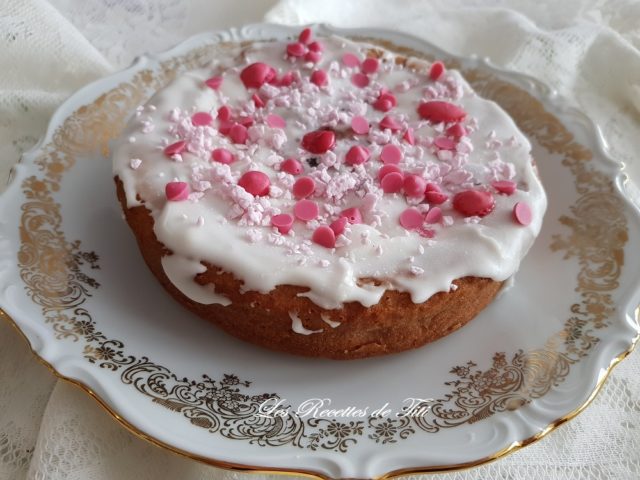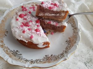 Bonjour bonjour, voila une recette que j’ai inventé. Bon j’avoue le visu du gâteau à l’intérieur n’est pas top, mais très bon quand même. Je pense que c’est mon coulis de fraise qui a fait ça, ou le yaourt qui n’était pas comme un yaourt nature mais « liquide » puisque c’était un yaourt aux fruits.