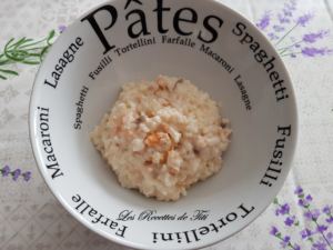 Oui je sais normalement ya du vin blanc dans le risotto mais je n’ai pas d’alcool à la maison (choix perso personne est obligé de m’imiter pour ça hein !!!).