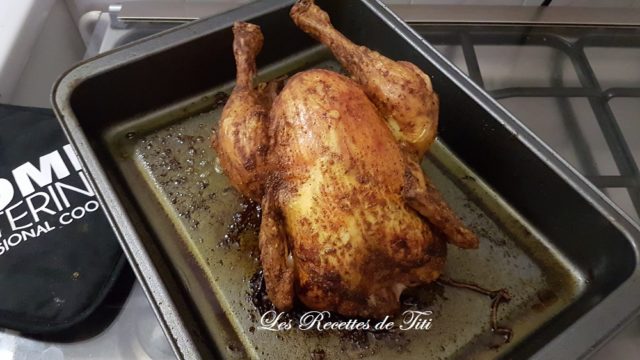 - Enfournez le poulet 1h20 environs jusqu’à ce qu’il soit bien doré et tendre.