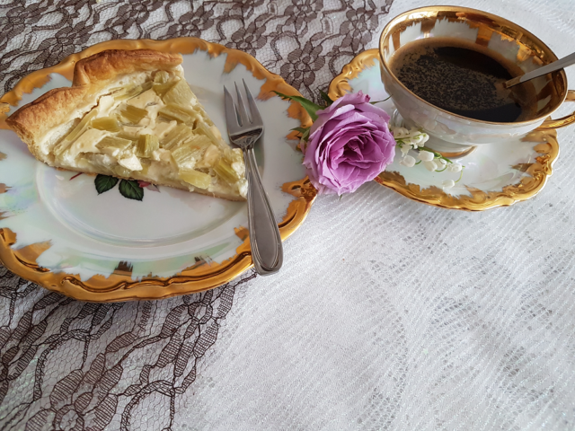 C’est la saison donc profitons-en ! Une bonne tarte à la rhubarbe faites par mes soins et en plus je me suis appliquée à vous faire une belle présentation !