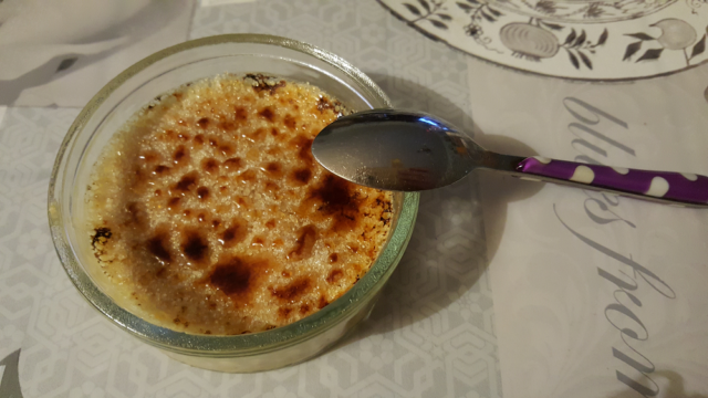 - Des la sortie du four saupoudrez de cassonade et passez 2 mn au grill (ou mieux au chalumeau de cuisine) pour caraméliser.