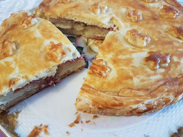 - Pour savoir si elle est cuite piquez la tourte avec un couteau et si les pommes de terre sont fondantes c’est que c’est cuit.