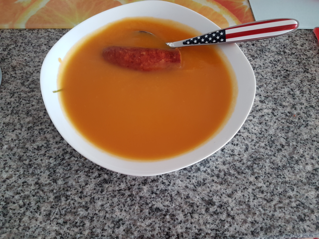 - Une fois cuite, passez votre soupe au mixer en ayant pris soin de retirer le ou les Montbéliard.