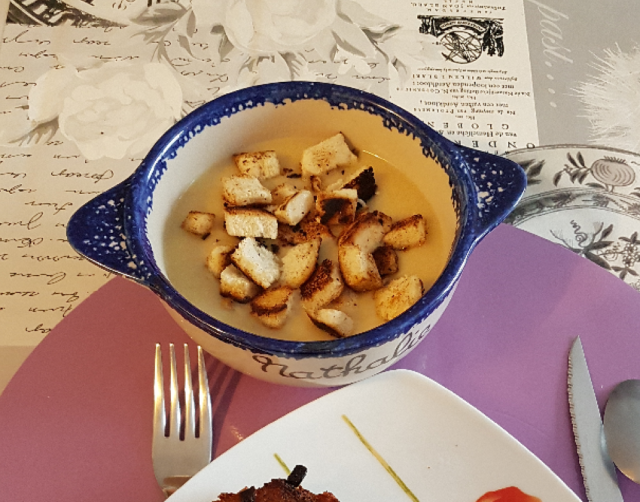 - Une fois votre velouté servi chaud parsemez le de vos croûtons.