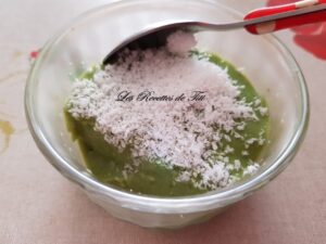 - Dans un saladier, mélangez farine et thé Matcha coco.