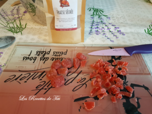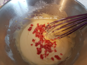 Avec les fraises séchées que j’ai reçu et comme j’avais tout ce qu’il fallait, hop ni une ni deux j’ai préparé ma pâte.