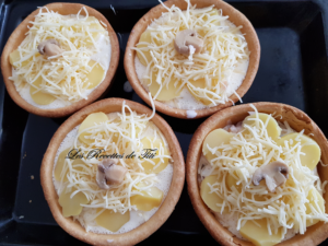 - Ajoutez les champignons puis un peu de gruyère râpé.