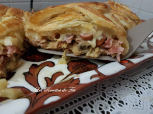 Il me reste quelques tranches de charcuterie, des knackis et des champignons et de la crème. D’où le nom de Tresse charcutière.